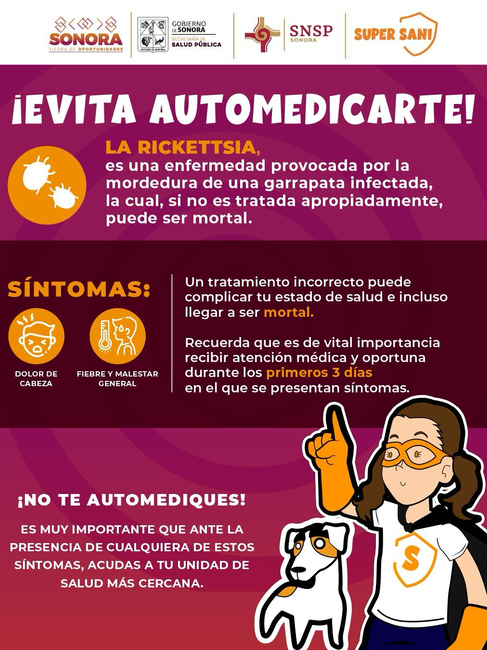 Finalmente, la Secretaría de Salud recomendó no automedicarse y mantener los patios y hogares limpios y ordenados, evitando la acumulación de objetos que puedan servir como refugio para vectores como las garrapatas que transmiten la rickettsiosis.